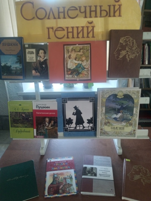 Книжно-иллюстративная выставка, посвященная русскому гению поэзии А.С. Пушкину, оформлена в читальном зале библиотеки «Дружная семейка».