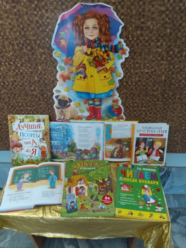 На выставке представлены книги для первоклассников – рассказы, сказки, стихи, а также стихи к праздникам.