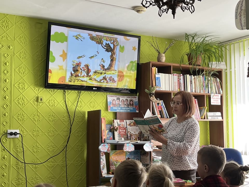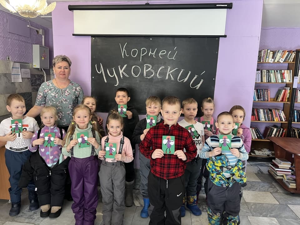 Путешествие в мир Чуковского началось с увлекательного знакомства с жизнью самого Корнея Ивановича. Затем малыши с удовольствием посмотрели любимые мультфильмы по его произведениям – «Муха-Цокотуха» и «Тараканище». А когда библиотекарь начала читать вслух «Путаницу», вся детская аудитория с радостью подхватила звуки животных: мы дружно крякали, квакали и даже хрюкали вместе с героями!