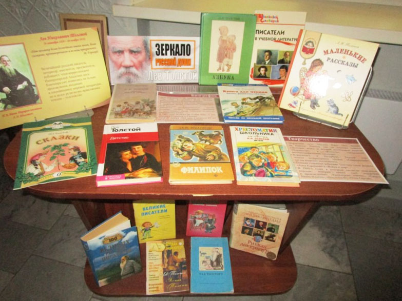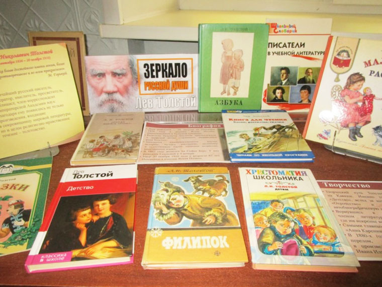 На выставке юные читатели познакомятся с литературным наследием писателя. Здесь и рассказы, и сказки, и басни; литература о биографии и творчестве писателя. Произведения Толстого для детей учат доброте, любви, смелости, находчивости, справедливости. Писатель уделял много внимания развитию детского образования, рассказывал об окружающем мире, учил правописанию. Лев Николаевич составил свою «Азбуку», в которой после алфавита шли поговорки и пословицы, различные упражнения для чтения и правописания.