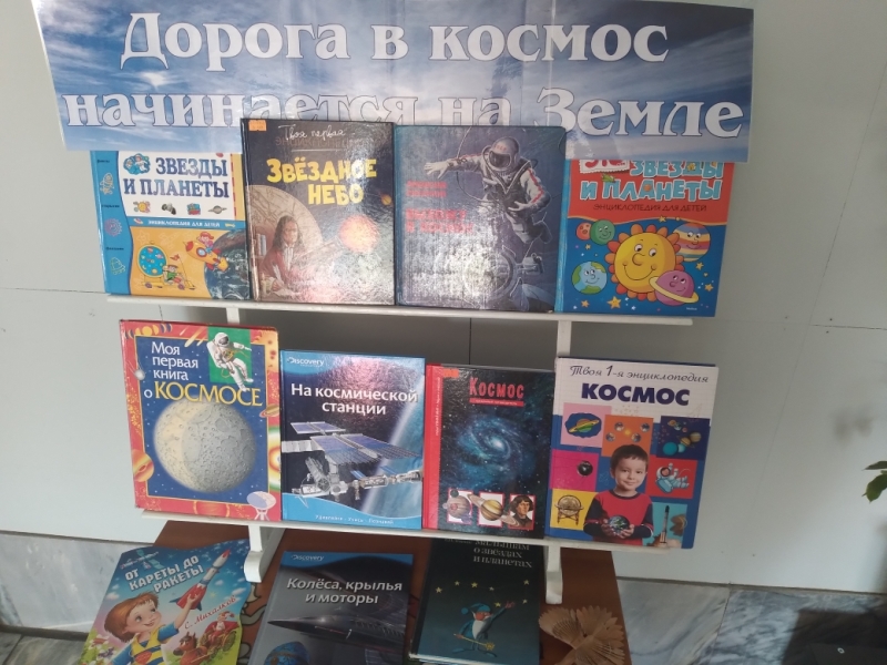 Далее познакомились с книжной выставкой «Дорога в космос начинается на Земле», на которой представлены детские энциклопедии о космосе.