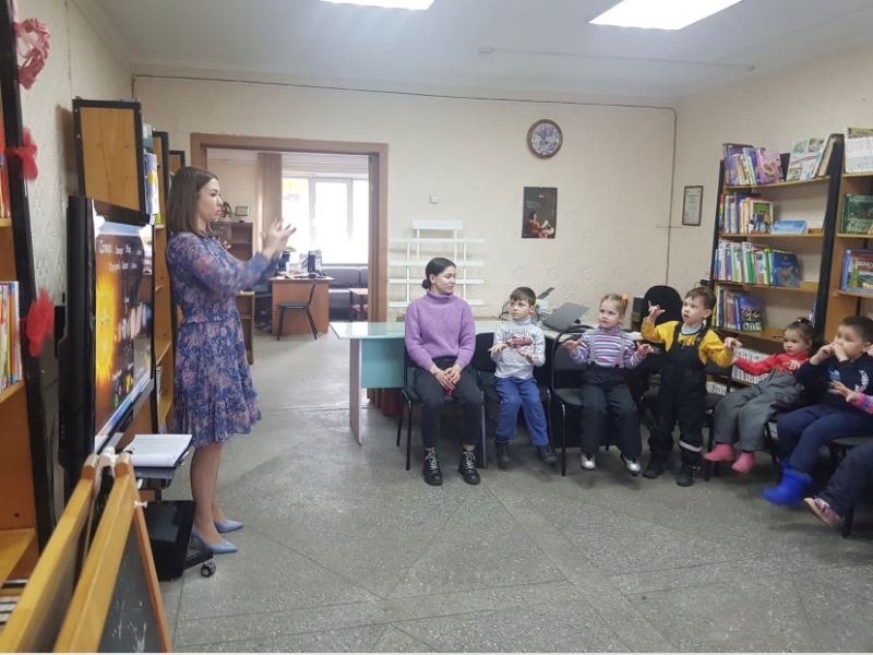 Патриотический час с элементами игры «108 минут вокруг Земли» для дошкольников прошел в библиотеке «Мир женщины» 13 и 14 апреля.