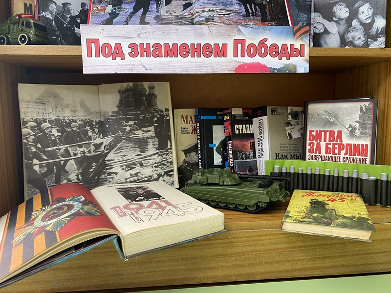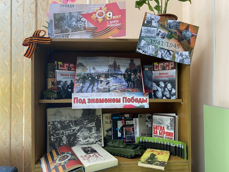 К празднику великой Победы в библиотеке были развернуты книжные выставки «Под знаменем Победы» и «В книжной памяти мгновения войны», а на официальном сайте МБУК «МИБС» размещена онлайн-викторина «1941 – 1945… через года, через века – помните…».