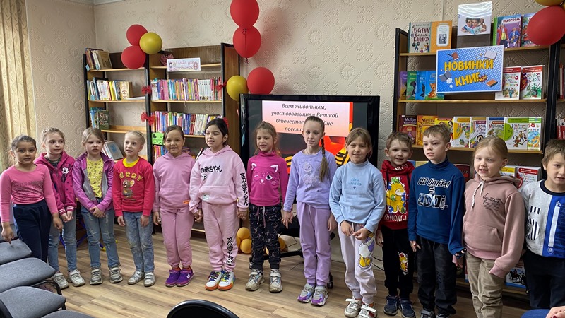 Познавательно-исторический час «Братья наши меньшие в боевом строю», урок памяти «Помни и никогда не забывай!», патриотический час «Маленькие герои большой войны» были проведены библиотекарями для обучающихся первых, вторых, третьих и четвертых классов 25 и 26 общеобразовательных школ города, а также для воспитанников старших и подготовительных к школе групп детских садов № 44 «Соловушка», № 45 «Добрая фея», № 58 «Аленушка».