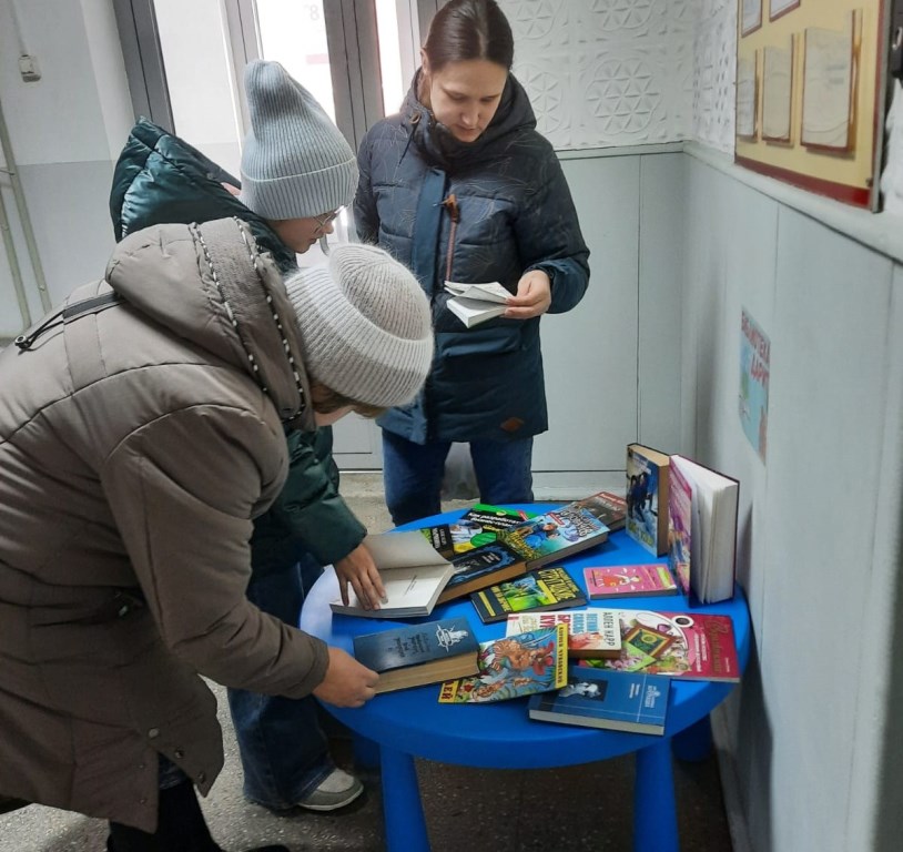 В фойе библиотеки сотрудники провели буккроссинг. Можно было обменять или просто выбрать в дар понравившуюся книгу из представленных. Порадовать себя смогли, как взрослые, так и дети, так как в буккроссинге участвовали и детские книги, и взрослые, написанные в различных жанрах.