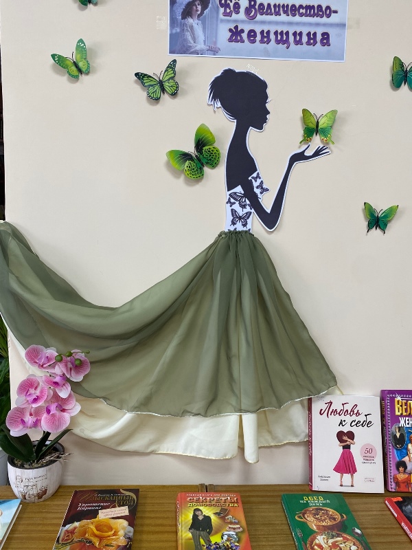 Книжная выставка «Ее величество женщина», посвященная Международному женскому дню, развернута в библиотеке «Мир женщины» с 4 марта.