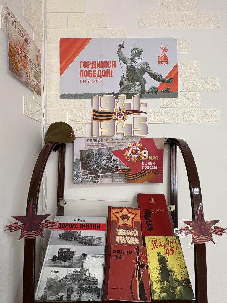 В библиотеке «Молодежная» оформлена книжная выставка «Гордимся Победой», посвящённая 80-летию Победы в Великой Отечественной войне.