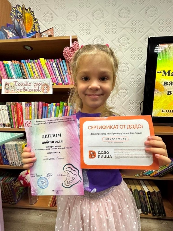 Все участники конкурса получили дипломы призеров, сладкие презенты и книжки-брошюры. Победители были награждены яркими красочными изданиями книг, сладкими презентами, а Ильиных Анна и Брылева Алина, как безоговорочные победители в своих категориях еще и сертификатами от партнера конкурса – сети пиццерий «Додо Пицца».