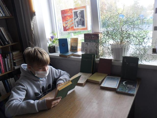 Книжная выставка в окне предлагала поэтические произведения и книги о жизненном и творческом пути поэта.