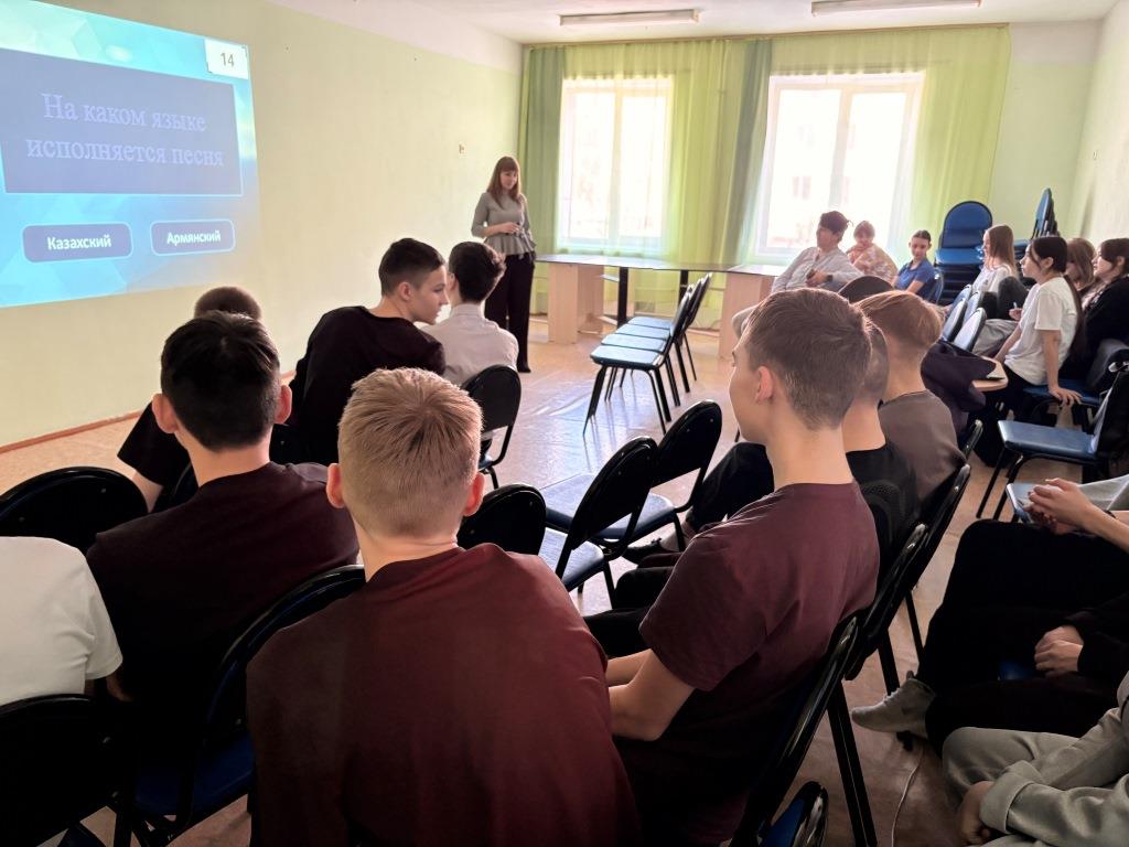 Ребята окунулись в культуру некоторых национальностей Российской Федерации. Разделившись на команды, они отвечали на вопросы четырех раундов: угадывали на каком языке поётся песня, определяли по звучанию народный музыкальный инструмент, выявляли правдиво или ложно то или иное высказывание о народах и их песнях.