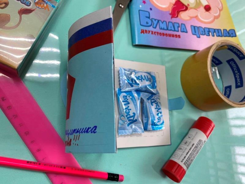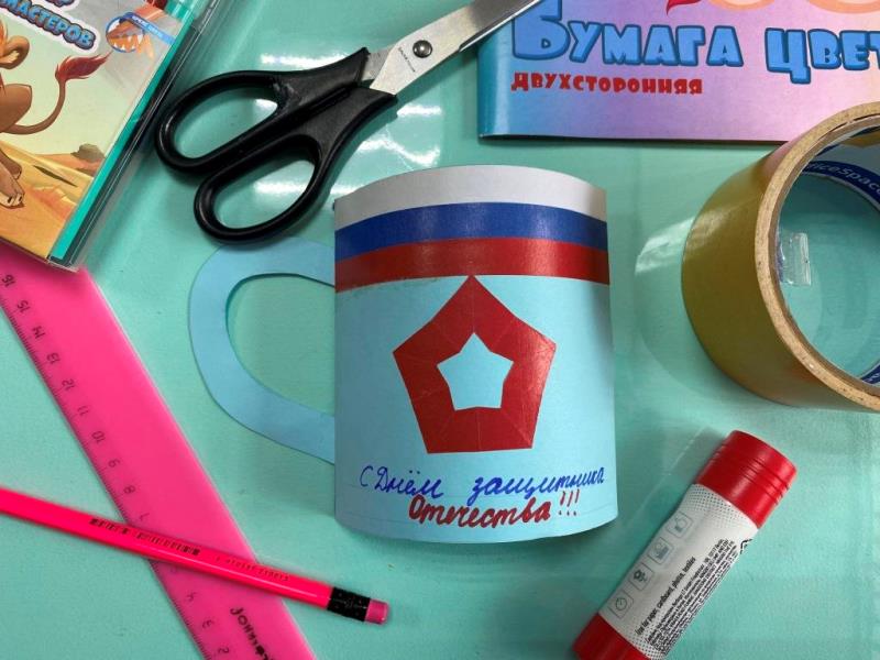 В преддверии праздника Дня защитника Отечества сотрудники библиотеки организовали мастер-класс по изготовлению объёмной и необычной открытки с сюрпризом. Участники мастер-класса при помощи ножниц, клея, цветного картона и бумаги, своими руками создали кружку-шкатулку с небольшим сладким презентом, которая станет отличным знаком внимания папе, дедушке, брату или другу.