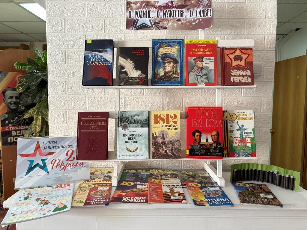 Книжная экспозиция «О Родине, о мужестве, о славе» открылась в библиотеке «Молодежная» 17 февраля.