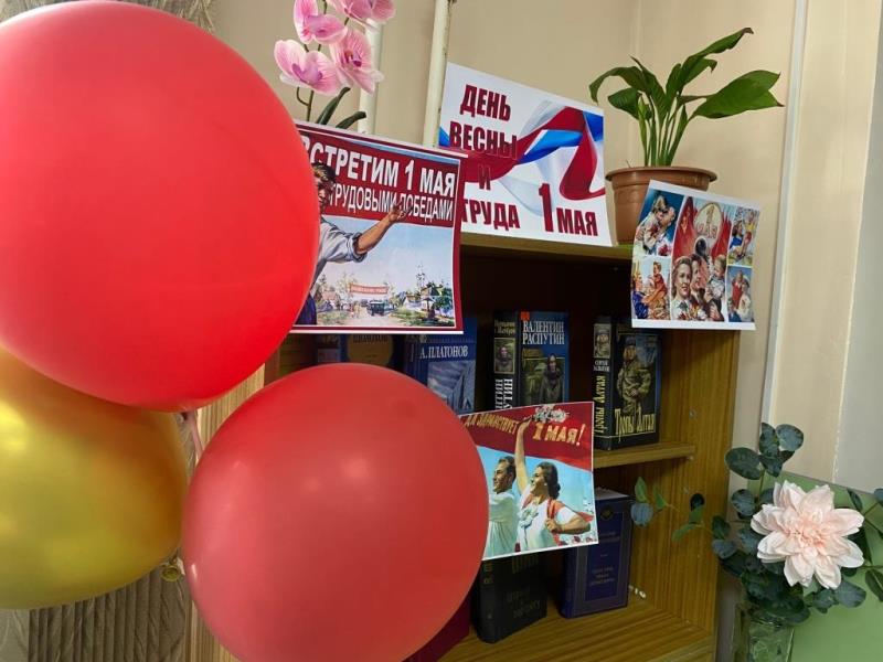 Для создания праздничной атмосферы в библиотеке была оформлена выставка-поздравление, на которой расположились произведения о героическом труде.