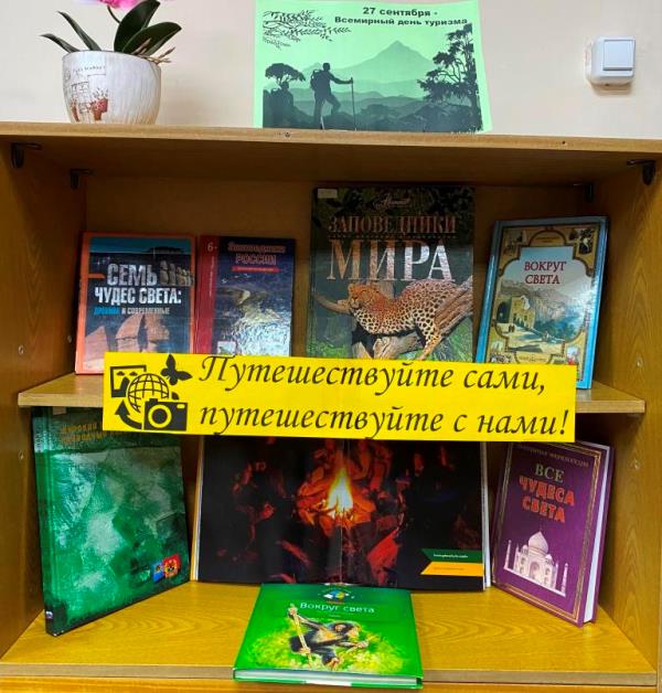 Книжная выставка «Путешествуйте сами, путешествуйте с нами», посвященная Всемирному дню туризма, открыта к посещению в библиотеке «Мир женщины» с 26 сентября.