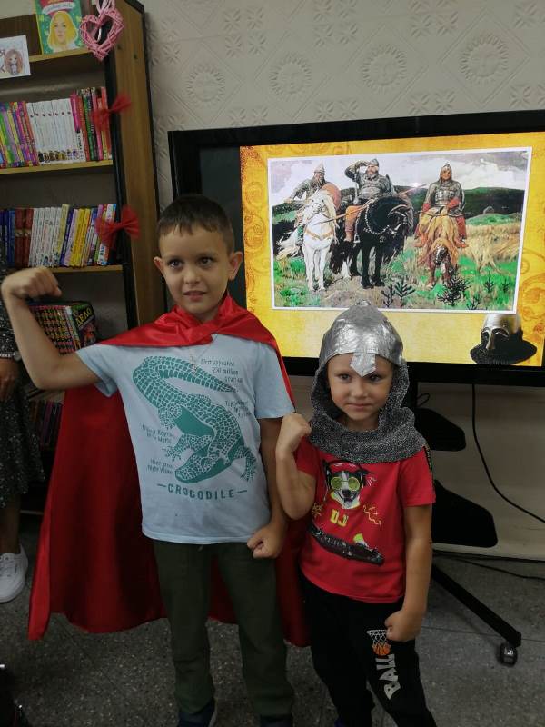 Русские былины представляют собой одно из самых оригинальных явлений в мировом фольклоре и с точки зрения содержания, и с точки зрения формы. В них отразился дух независимого, могучего, трудолюбивого и добродушного русского народа, а их основными приметами стали врожденный патриотизм и неиссякаемая жизнерадостность. В ходе встречи ребята узнали о великих подвигах русских богатырей Ильи Муромца, Добрыни Никитича, Алеши Поповича и других. Вместе с библиотекарем они рассмотрели полотно русского художника В.М. Васнецова «Богатыри» и обсудили, что происходило на картине, кто на ней изображен. Восторг у малышей вызвали игра «Защитная крепость», где нужно было «богатырю» при помощи «дружины» построить крепость по схеме, разминка «Молодцы-удальцы», а также забава «Собери богатыря в путь-дорогу», в которой участникам необходимо было, ответить на вопросы и собрать обмундирование настоящего русского богатыря. Последняя так понравилась ребятам, что они устроили фотосессию, поочередно надевая получившийся костюм.