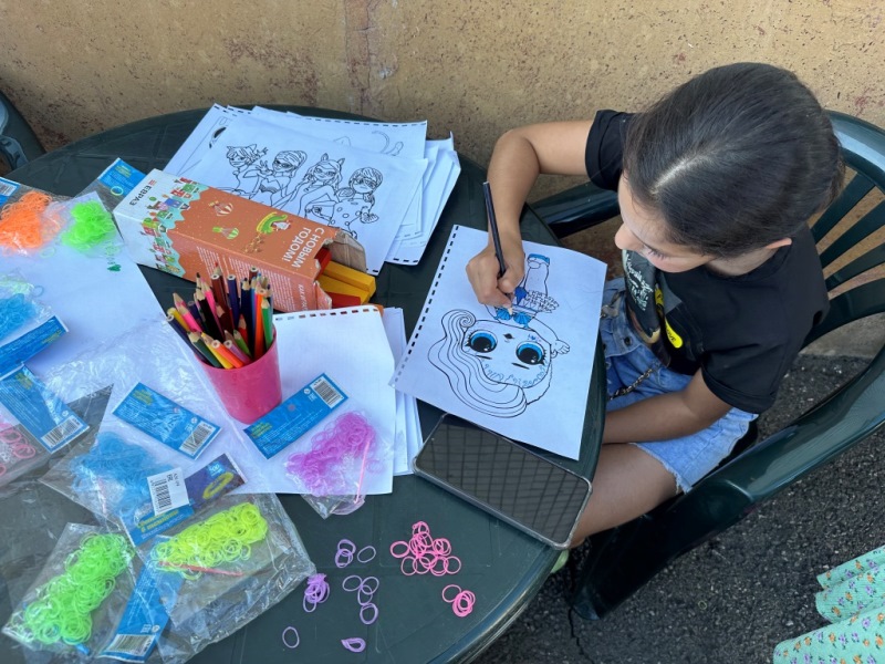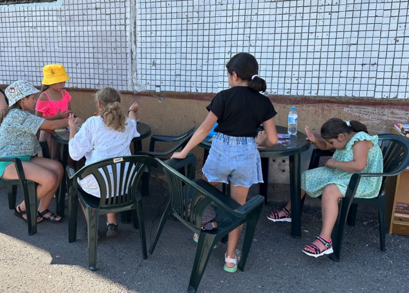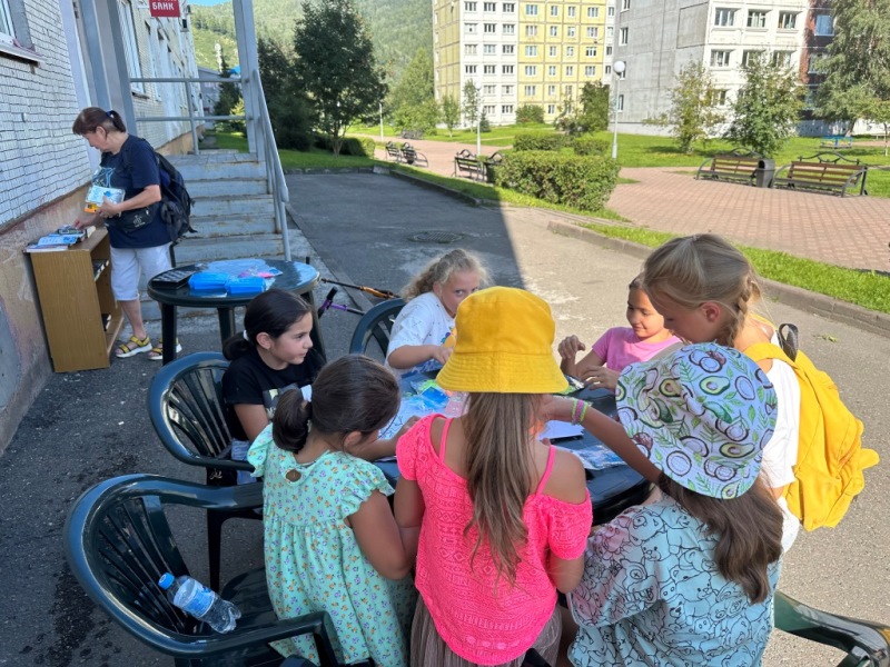 Для юных междуреченцев на площади рядом с библиотекой в тот же день состоялась игровая программа «Наш веселый дворик», которая включала в себя различные настольные игры (игры-ходилки, пазлы, раскраски, логические задания, «башня Дженга», «Морской бой», шашки, шахматы и др.), а также мастер-класс по плетению украшений из резиночек.