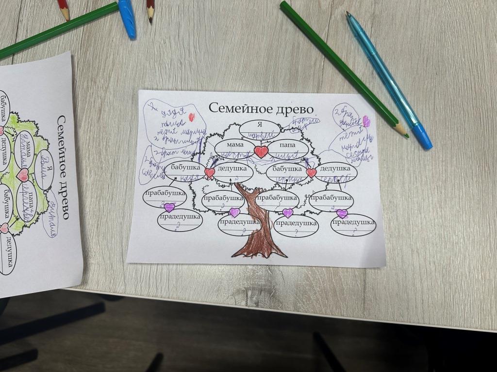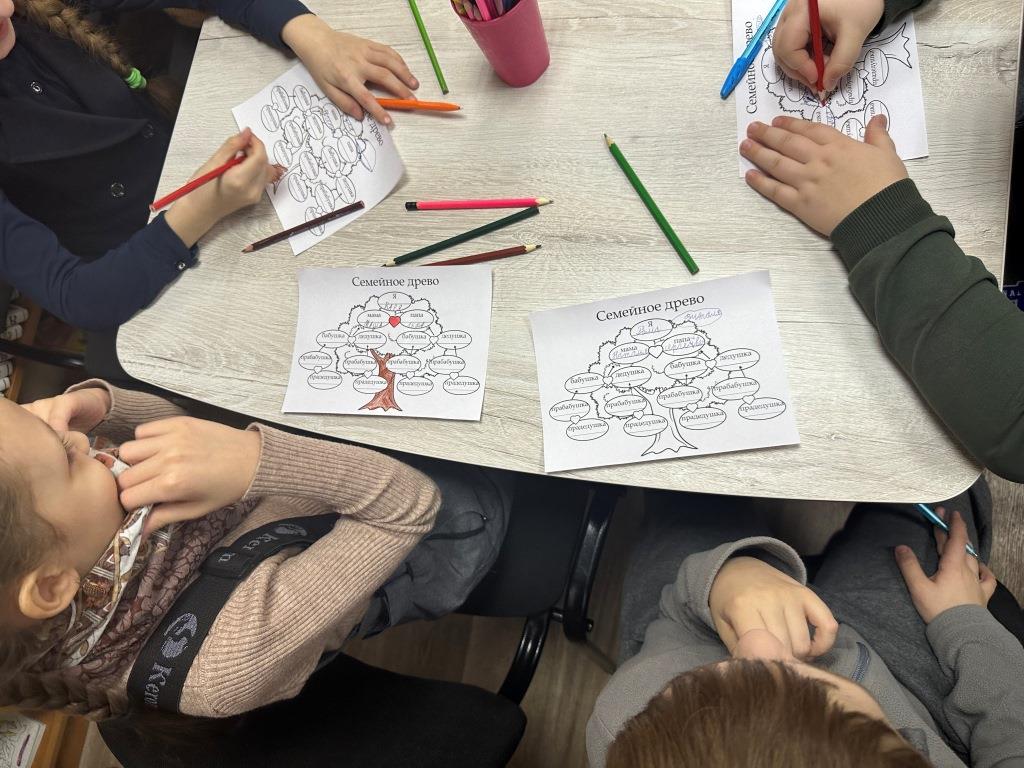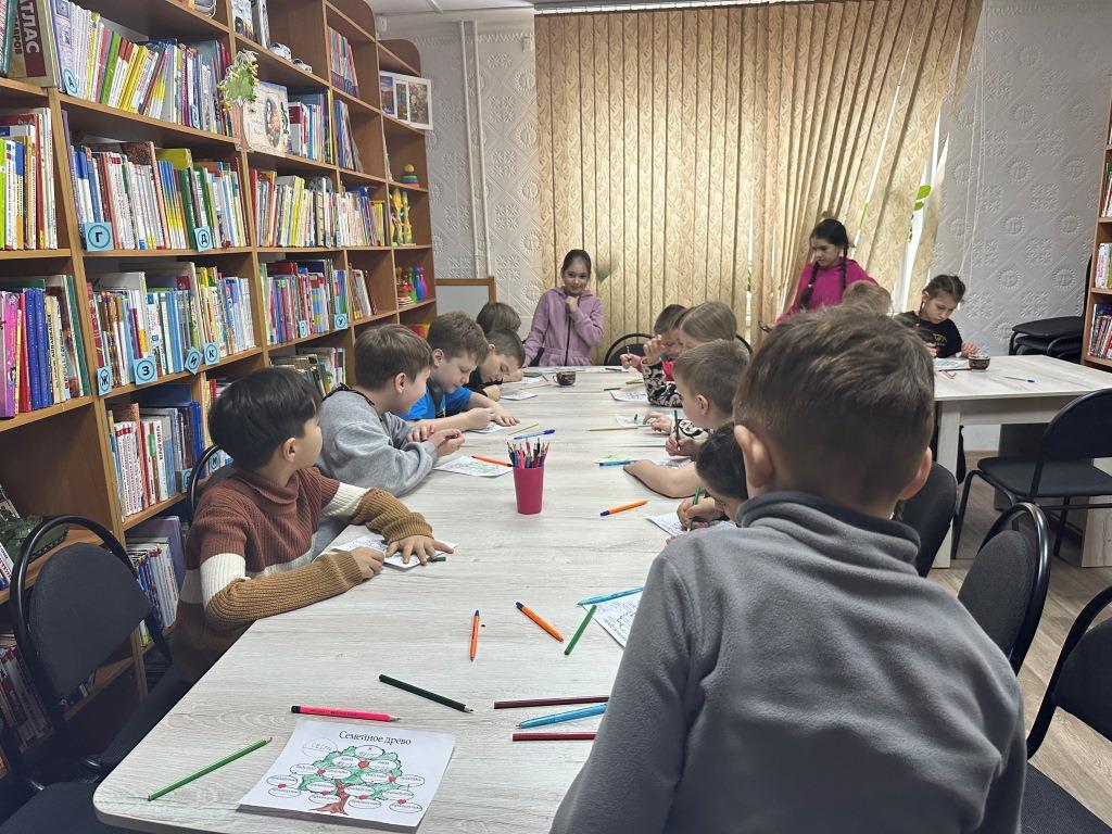 Одной из основных тем мероприятия стало понимание важности знаний о своих предках и истории семьи. Библиотекарь предложила ребятам наглядное задание – создать родовое генеалогическое древо. Вооружившись специальным шаблоном и цветными карандашами, они с большим воодушевлением принялись выполнять практическую работу. У кого-то получилось вспомнить только бабушек и дедушек, ну а кто-то смог вписать в генеалогическое древо прабабушек и прадедушек.
