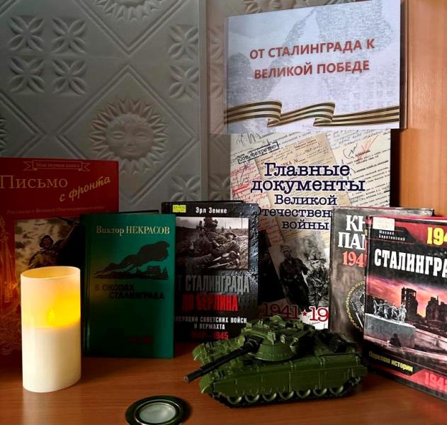 Урок памяти дополняла книжная выставка «От Сталинграда – к великой Победе», на которой были представлены художественная литература о Великой Отечественной войне, а также издания, повествующие о хронологии событий важнейшей битвы в истории Великой Отечественной войны.