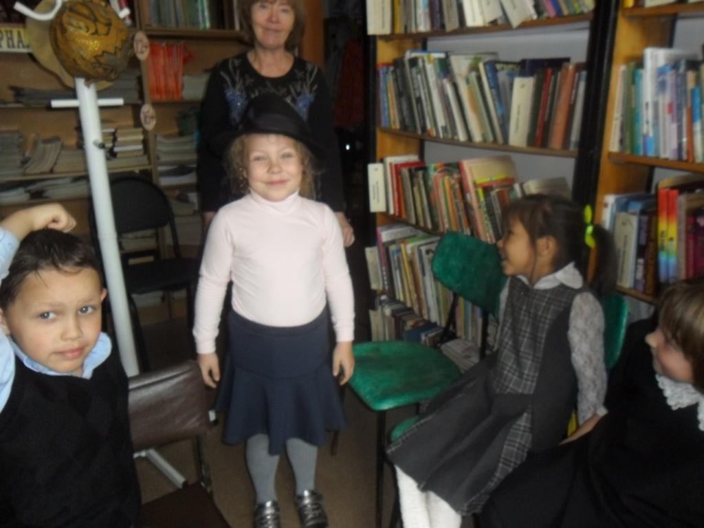 Актерами и зрителями стали ученики школы №12. Театральное действие началось с представления яркой книжной выставки Кругловой Валентиной Иннокентьевной и режиссером Карелиной Валентиной Григорьевной разминки «Шляпная викторина», которая предлагала выбрать шляпу и назвать сказочного персонажа.