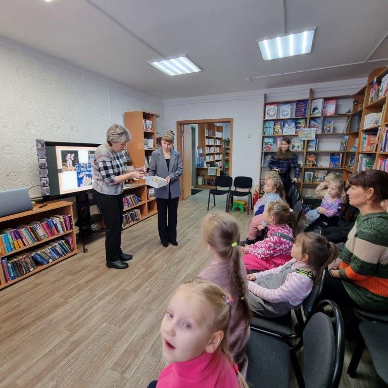 Но это ещё не всё! Завершилось наше мероприятие приятным подарком: библиотекари преподнесли советскую новогоднюю игрушку в коллекцию музея новогодних игрушек сада.