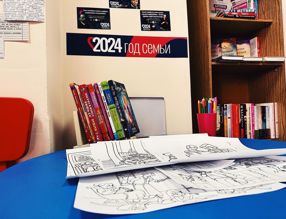 О самых маленьких читателях библиотека тоже позаботилась, организовав творческое место, где дети смогут разместиться за удобным столом, взять в руки цветные карандаши и раскрасить картинку на семейную тематику.