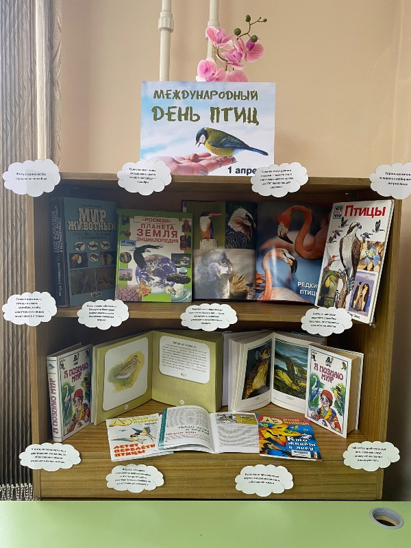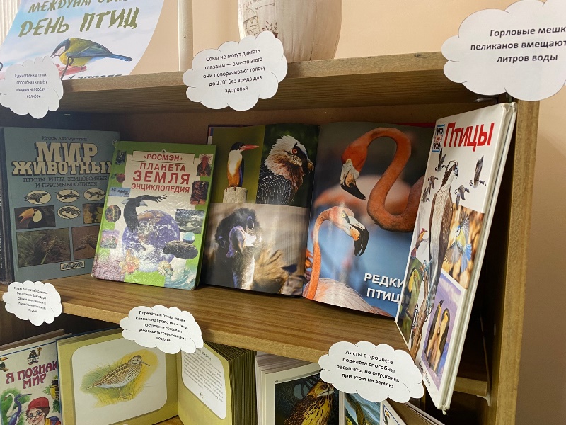 Книжная выставка «Птичьи секреты», посвященная Международному дню птиц, развернута в библиотеке «Мир женщины» с 1 апреля.
