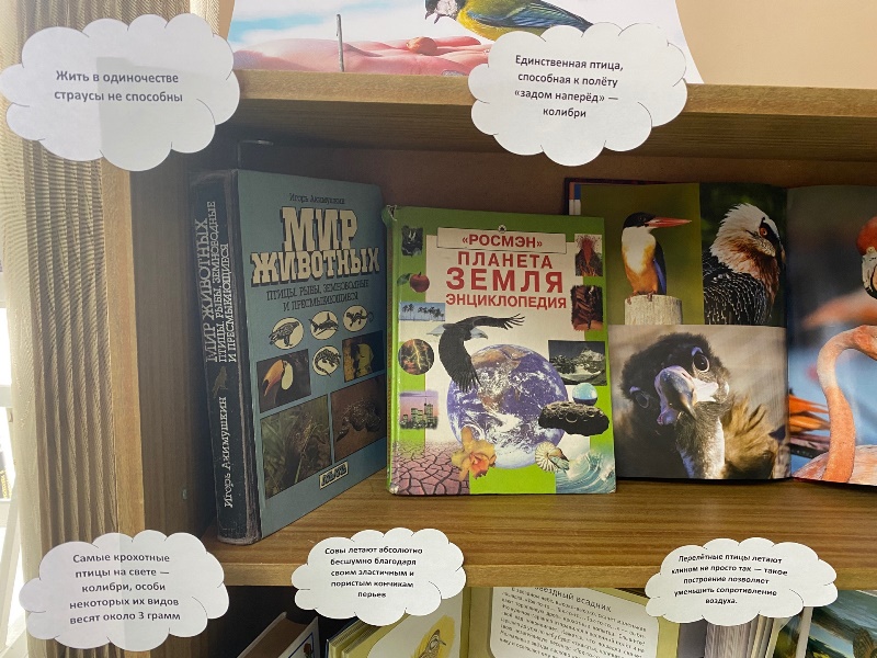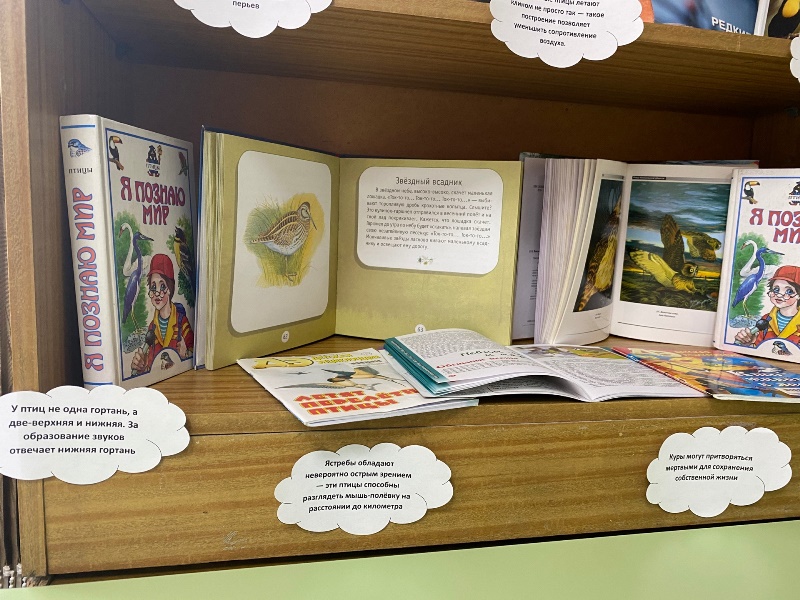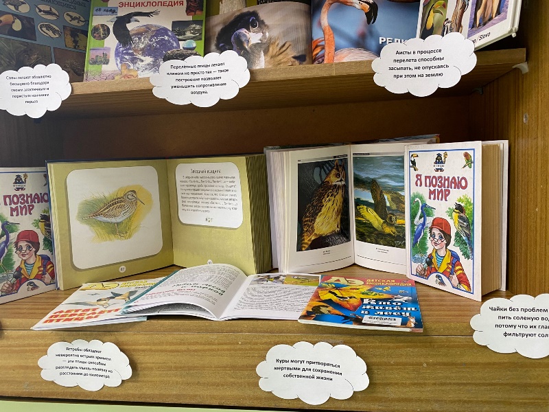 На выставке представлена подборка интереснейших познавательных и художественных книг о птицах.