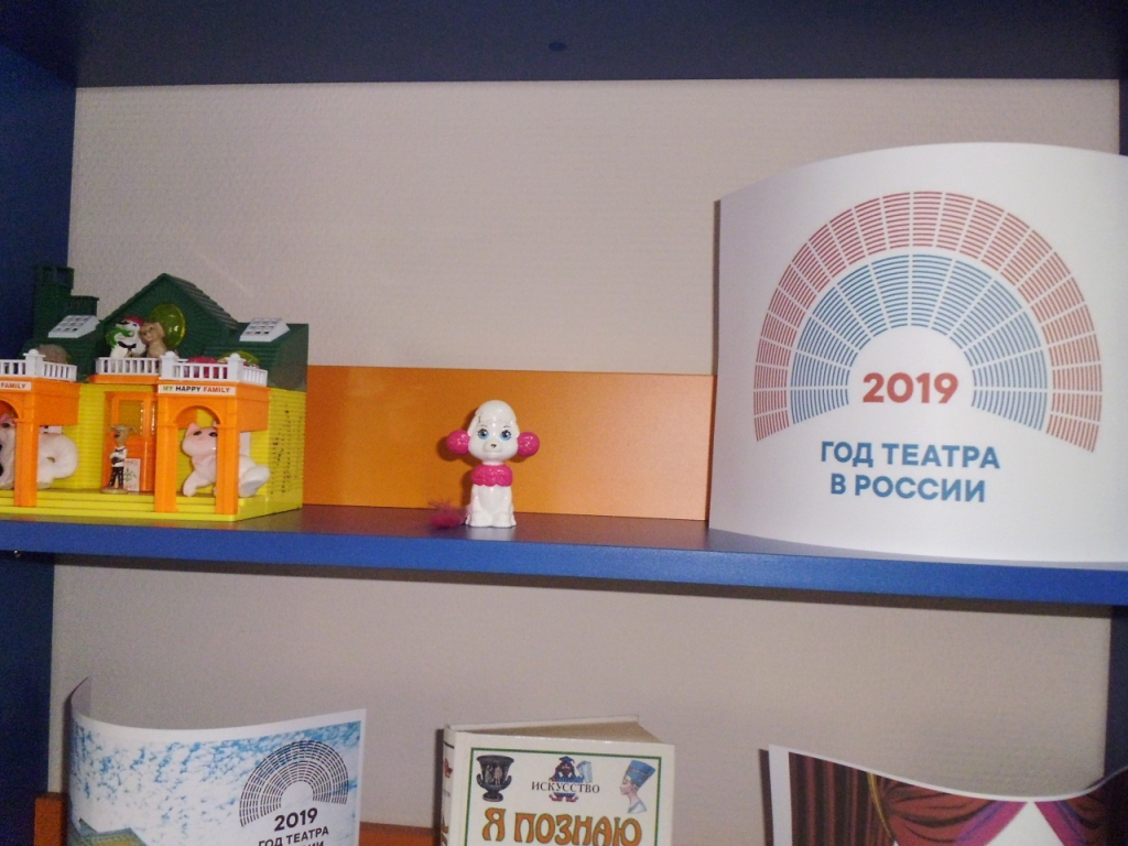 В библиотечном информационно-досуговом центре поселка Притомский демонстрируется книжно-иллюстративная выставка «2019 год – Год театра в России», оформленная занавесом, в экспозиции которой представлены театральные маски, а также книги о театре и о людях, связавших свою жизнь со сценой.