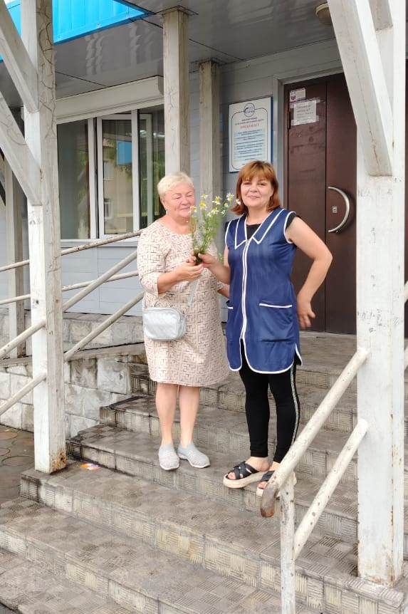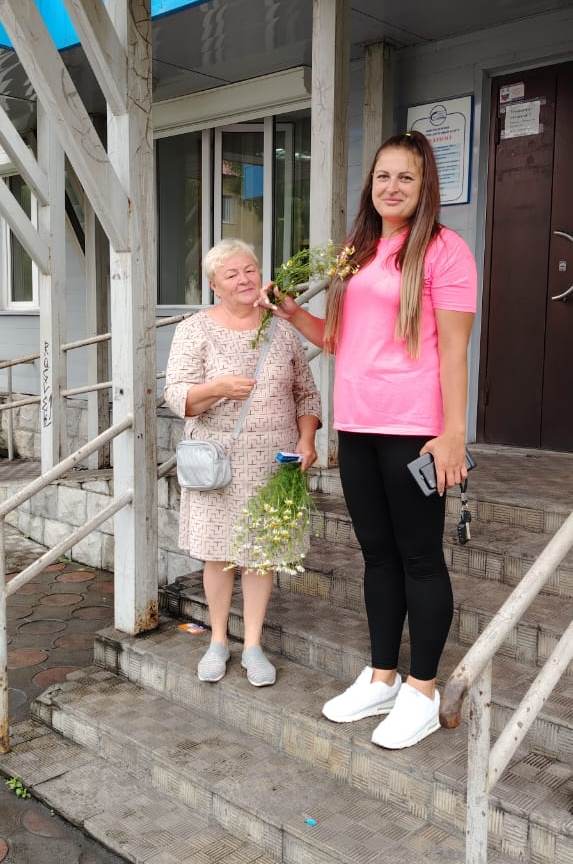 Прохожим в этот день, сотрудники библиотеки и совет ветеранов поселка Притомский, дарили улыбки и букетик ромашек.