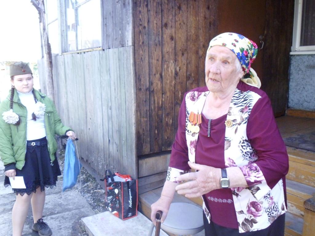 Анну Григорьевну поблагодарили за проникновенный рассказ о военных годах и пожелали ей здоровья, оставаться такой же активной и жизнерадостной. Белозерская Ангелина и Креветкина Василина подарили песню, а работники библиотеки сладкий подарок.