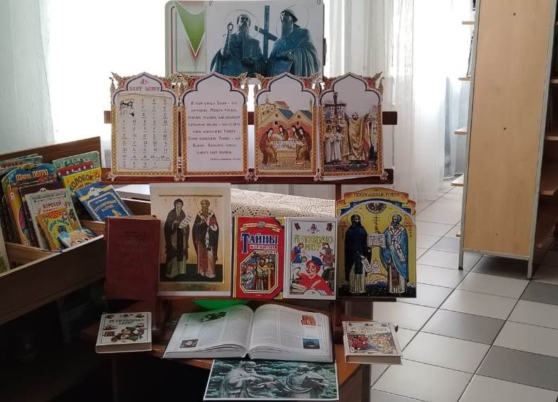 Книжная выставка «Аз – свет миру» ко Дню Славянской письменности и культуры оформлена в библиотеке «Притомская».