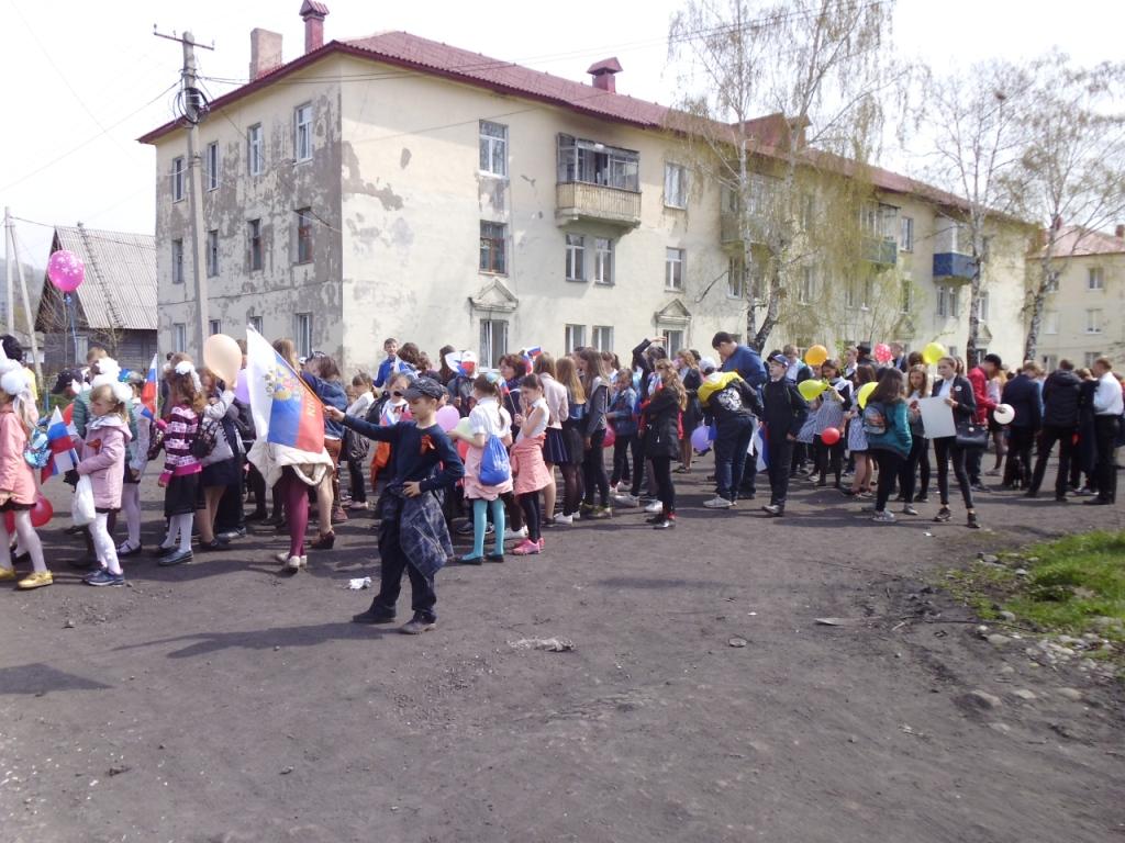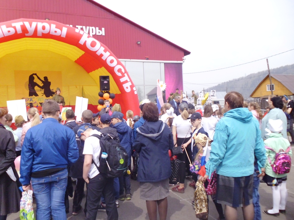 Колонна прошла от центра поселка до площади ДК «Юность», где состоялся торжественный митинг, посвященный празднованию знаменательной даты.