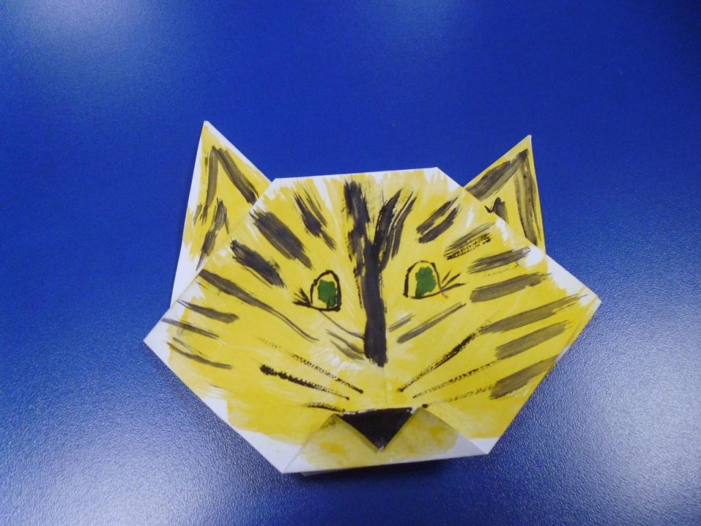 На занятии решили сделать своими руками тигра. Сначала несмело, оглядываясь друг на друга, осторожно сгибали ребята бумагу. Но чем яснее стали проявляться очертания животного, тем быстрее хотелось похвастать полученной фигуркой. Тигр готов. Время пролетело незаметно.