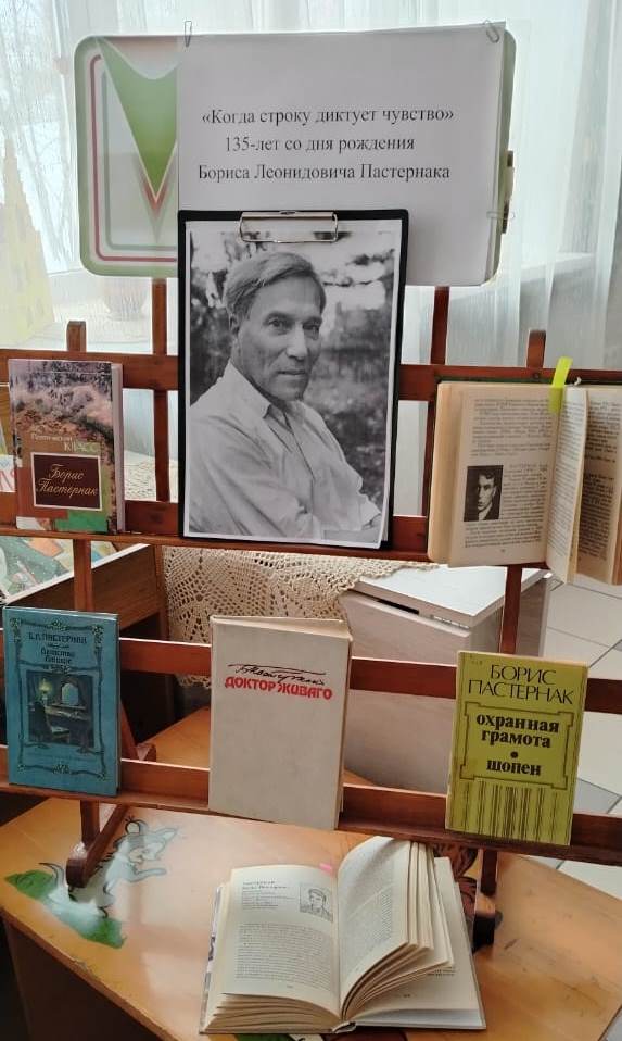 Книжная выставка «Когда строку диктует чувство» к 135-летию со дня рождения Бориса Леонидовича Пастернака, русского поэта, прозаика, переводчика, лауреата Нобелевской премии представлена в библиотеке «Притомская».