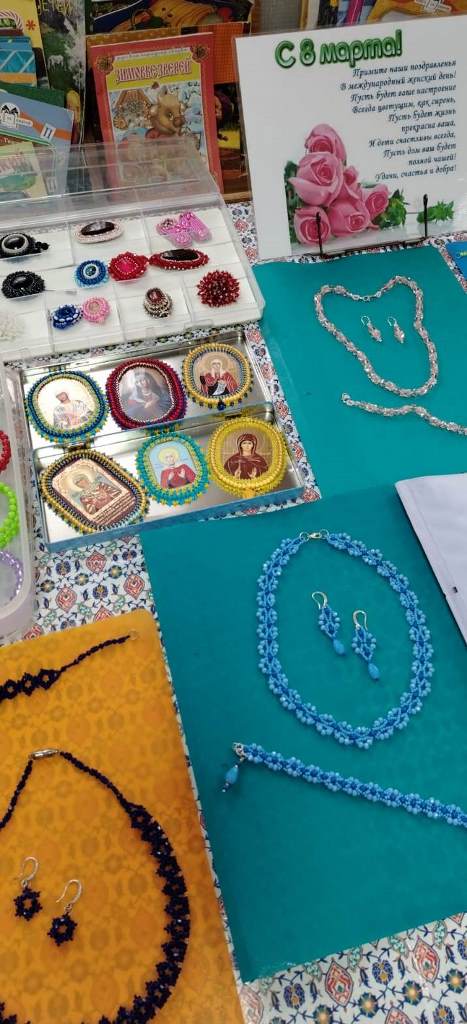 Персональная выставка работ Соломенниковой Ирины Александровны имела успех. Присутствующие любовались украшениями и многие приобрели украшения в свои коллекции.