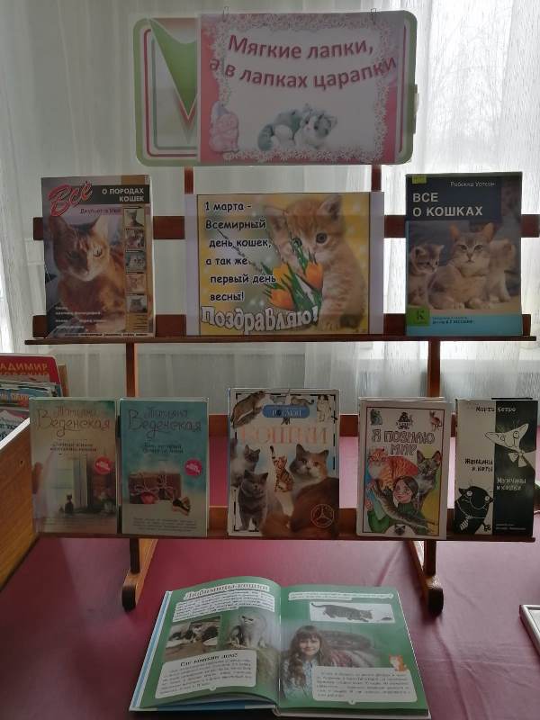 Книжная выставка «Мягкие лапки, а в лапках царапки», к Международному дню кошек открылась в Библиотечном информационно-досуговом центре поселка Притомский.