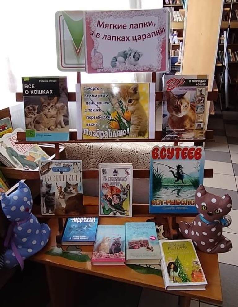 Книжная выставка «Мягкие лапки, а в лапках царапки», к Международному дню кошек открылась в библиотеке «Притомская».