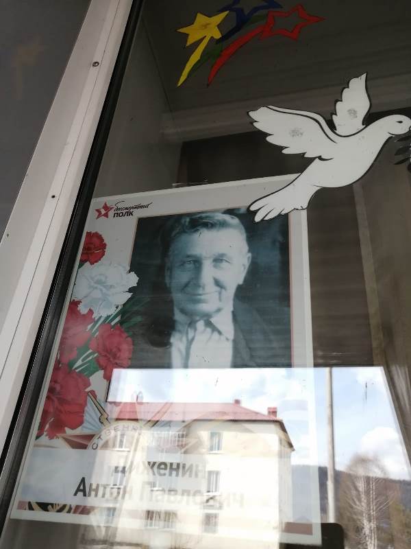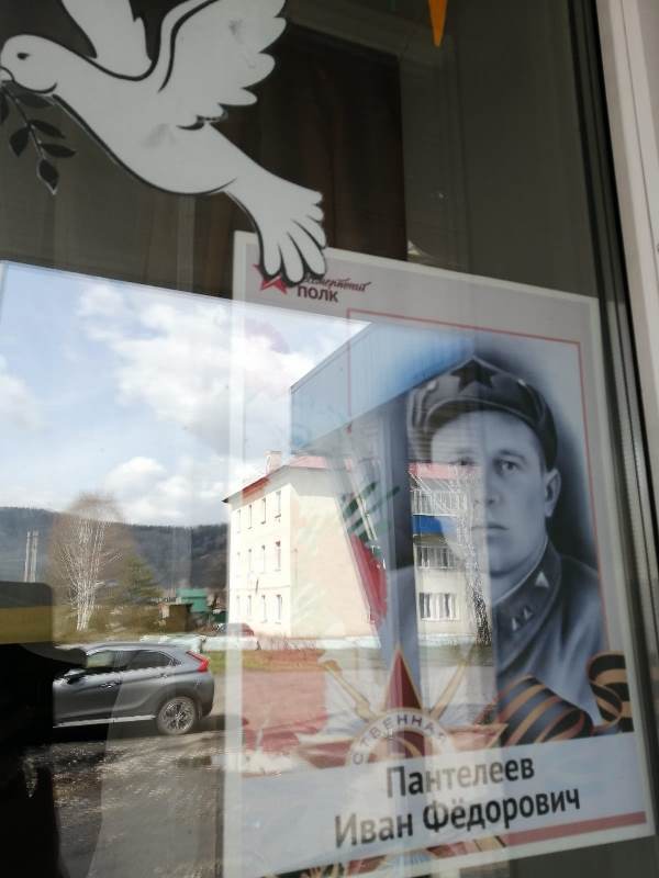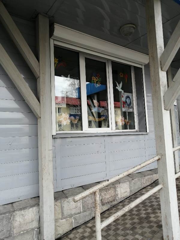 На окнах библиотеки размещены фотографии участников Великой Отечественной войны, которые вошли в летопись памяти поколений. Фотографии принесли в библиотеку жители поселка.