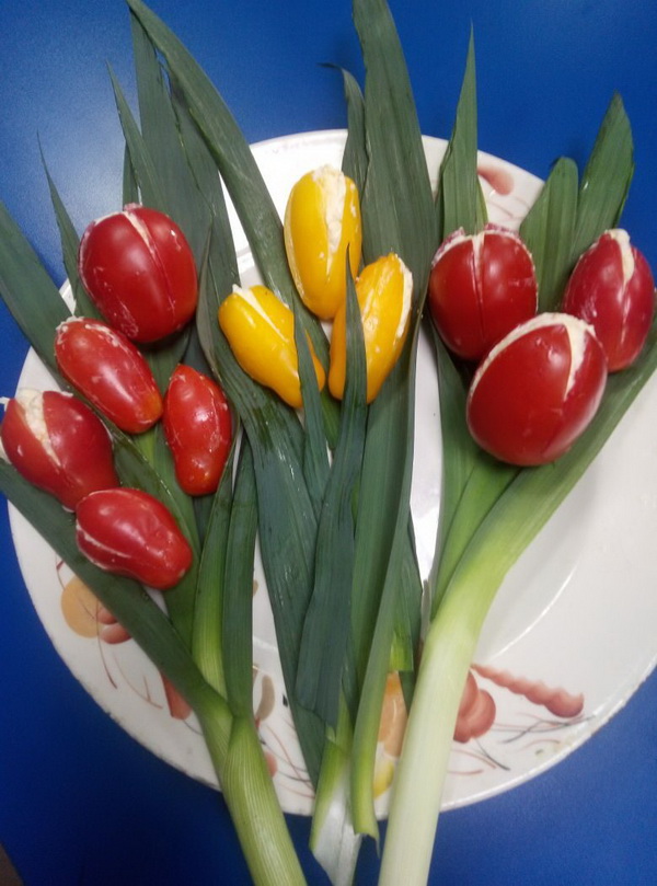 Участники поделились огородными успехами и похвастались выращенным урожаем, проявили себя в творчестве - из овощей, ягод, цветов оформили поделки к 300-летию Кузбасса и к 75-летию Победы. К 65-летию Междуреченска приготовили салат «Букет тюльпанов» из помидор.