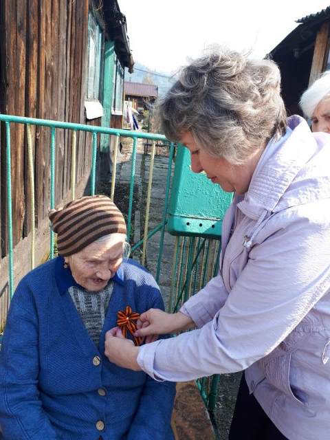 В знак благодарности и уважения для Шлюбченко Анны Григорьевны, Ермаковой Зинаиды Григорьевны и Ласточкиной Эльвиры Васильевны прозвучали военные песни в исполнении группы «Притомские напевы» и вручены памятные броши в рамках акции «Георгиевская ленточка».
