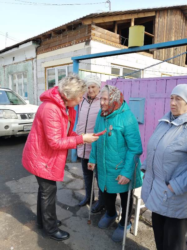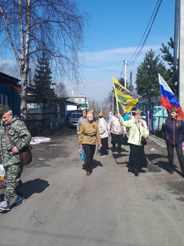 Уже по традиции 5 мая работники Библиотечного информационно-досугового центра, Совет ветеранов поселка Притомский и председатель профсоюзного комитета МБДОУ 45 «Добрая фея» Хорошева Елена Геннадьевна поздравили детей Великой Отечественной войны и тружеников тыла с Днем Победы.
