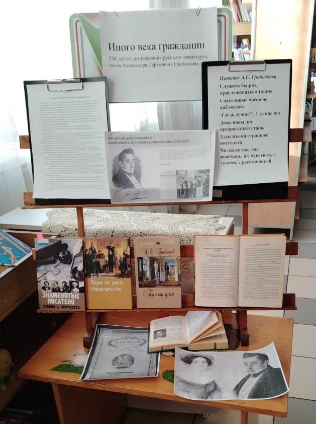 Библиотека «Притомская» предлагает посетителям окунуться в мир короткой, но яркой жизни Александра Сергеевича Грибоедова. На книжной выставке будут представлены разнообразные и интересные материалы, посвященные этому талантливому писателю. Однако, если бы не его знаменитая комедия «Горе от ума», о Грибоедове, возможно, знали бы гораздо меньше.