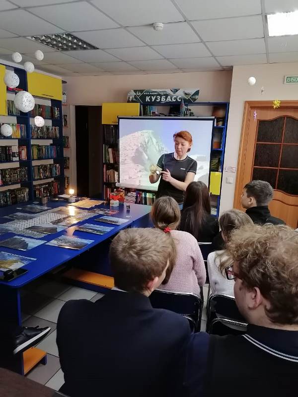 На встрече ребята познакомились с опытным туристом – Верой Гореявчевой. Она рассказала и наглядно показала, какая экипировка необходима для путешествий по дикой природе в летнее, а также в зимнее время. Это, конечно же, компас и карта, палатка и туристический коврик, снегоступы и разборная лопатка, и многие другие необходимые предметы, которые так компактно поместились в рюкзаке Веры Владимировны. Учащиеся отвечали на вопросы, задавали свои и захотели сами побывать в заповеднике и в горах Кузнецкого Алатау.
