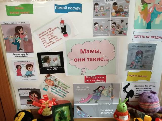 В рамках акции в библиотеке представлена книжная выставка «Целуем руки матерей». Для читателей библиотеки был проведен обзор книг, представленных на выставке. В честь дорогих мам подготовлена праздничная юмористическая газета «Мамы, они такие…».
