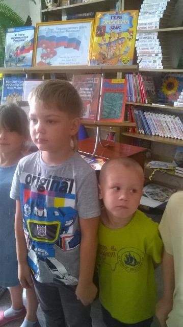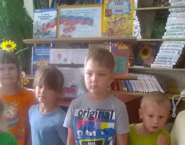 Вместе с библиотекарем ребята совершили путешествие в историю возникновения флага в Российской Федерации, разгадывали загадки, вспоминали пословицы и стихи о флаге, а также приняли участие в викторине на знание главных символов Российской Федерации.