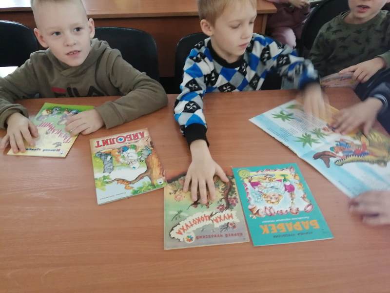 В конце мероприятия юные читатели посмотрели фрагмент отечественного мультфильма «Федорино горе», обсудили героев произведения и полистали книжки на тематической выставке «Сказки дядюшки Корнея».