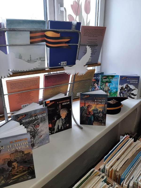 На выставке представлены новые художественные книги о ВОВ. Это литературные произведения о событиях, подвигах, историях минувшей вой-ны. Лучшие произведения для детей, среди которых рассказы о войне Льва Кассиля, повести А. Алексина, В. Богомолова, Г. Семенова и других писателей. Эта литература будет интересна не только детям, но и взрослым.