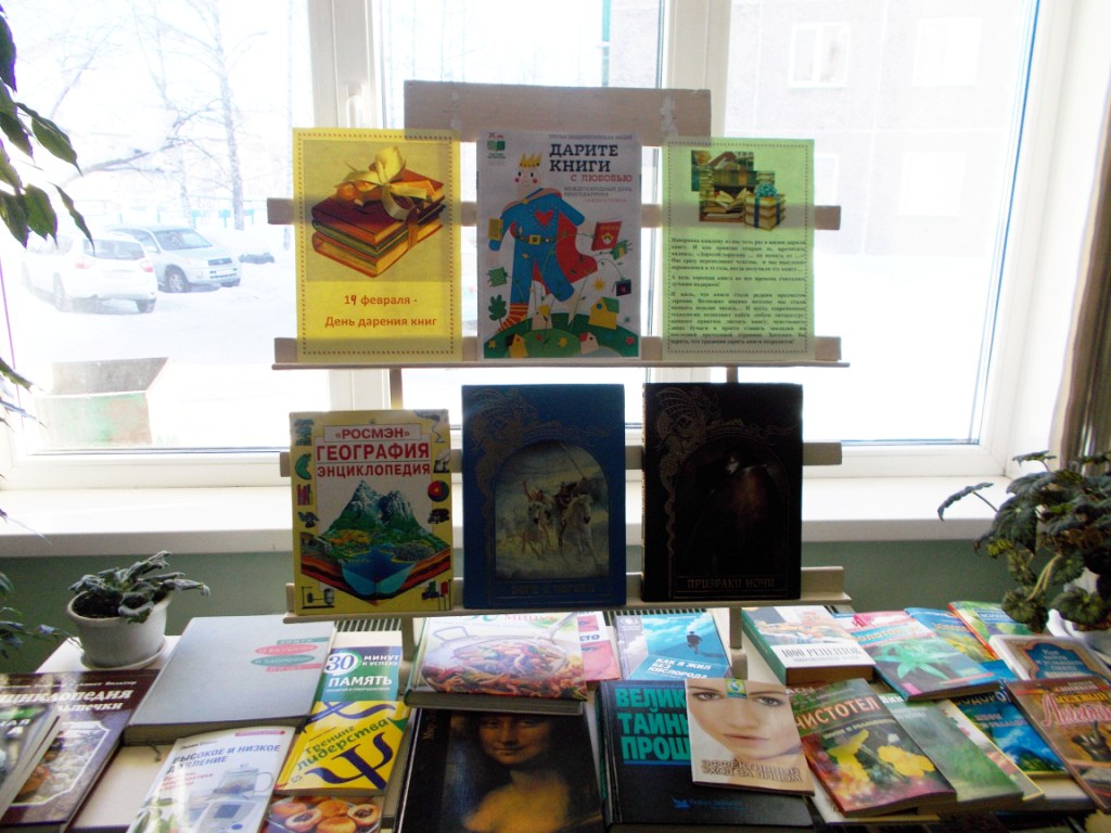 14 февраля в библиотеке «Центр национальных культур» прошла акция «Библиотека дарит книги», посвящённая Дню дарения книг. С выставки выбрали книги для своего развития 12 человек.