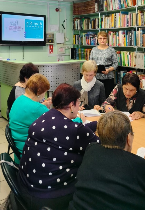 В библиотеке Диктант проходил для участников клубов «Огонёк» и «Ажиотаж» в режиме офлайн. Вопросы были взяты из диктантов прошлых лет. Присутствующие ответили на 30 вопросов с вариантами ответов. Большинство порадовали себя правильными ответами.