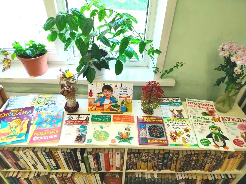 На ней представлены книги, которые рассказывают и показывают, как самостоятельно смастерить фигурки из природных материалов, куклы и игрушки из ваты, освоить бисероплетение, искусство квиллинга и оригами, и многое другое.